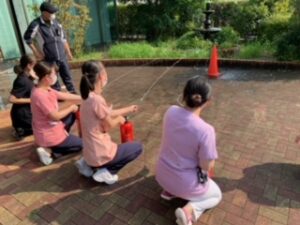 いざというときに職員全員が迅速な消火や入院患者さんを火と煙から守る避難誘導ができるよう訓練しております。